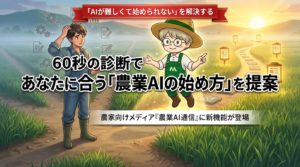 農業AI通信では、いくつかの質問に答えるだけであなたに合った記事をAIが提案してくれる「おすすめ診断」を用意しています。